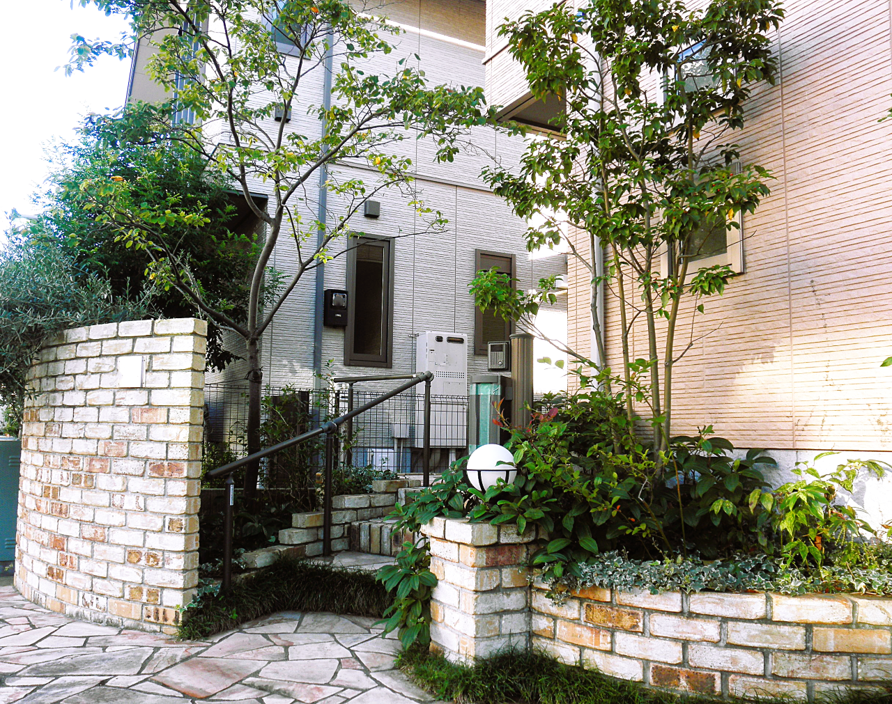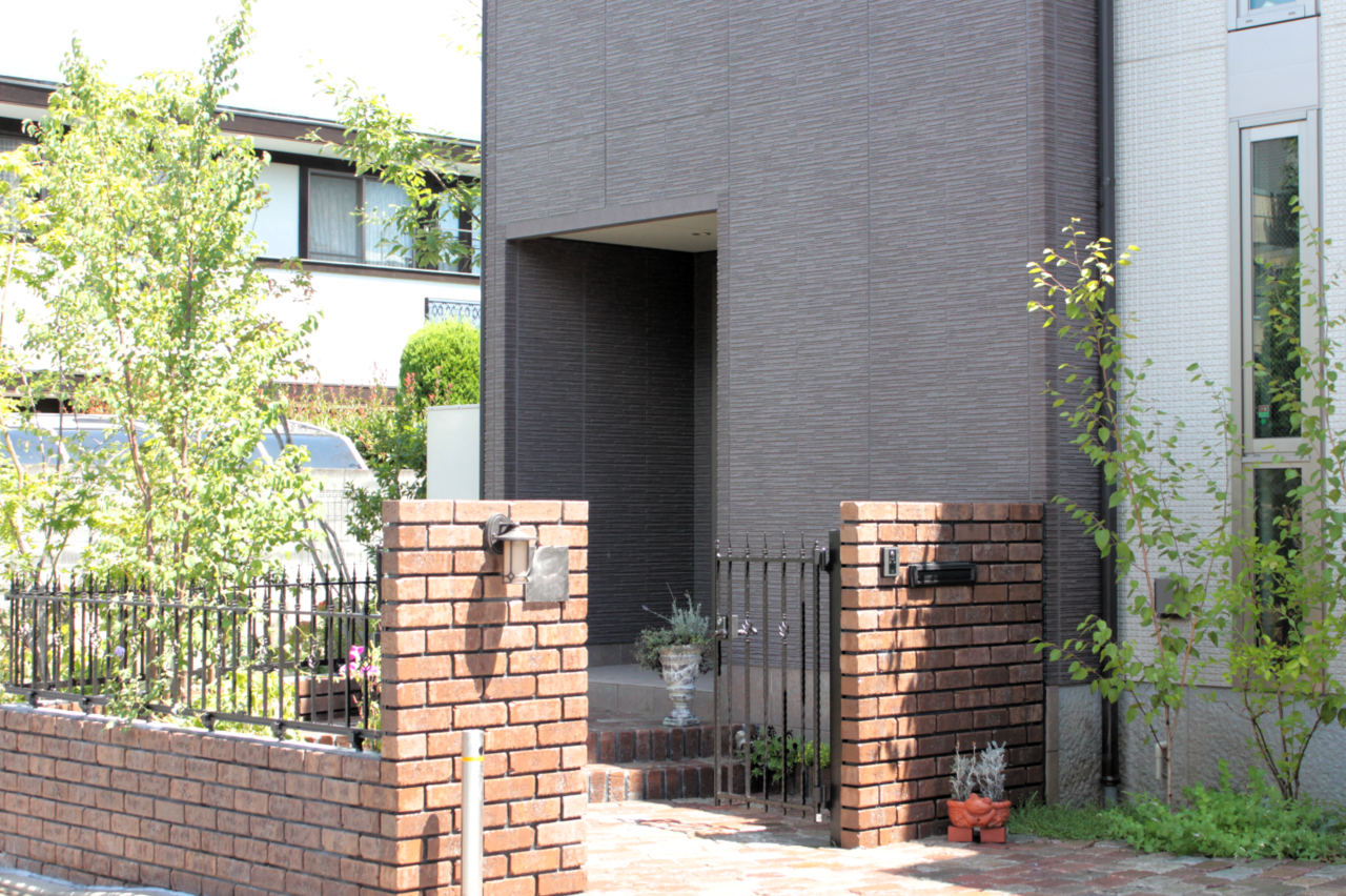 植栽、アプローチ、レンガ、デッキ、フェンス、テラス、カーポート、塀、柵、門扉、ポスト、水栓、垣根など、トータルでコーディネイトしています。