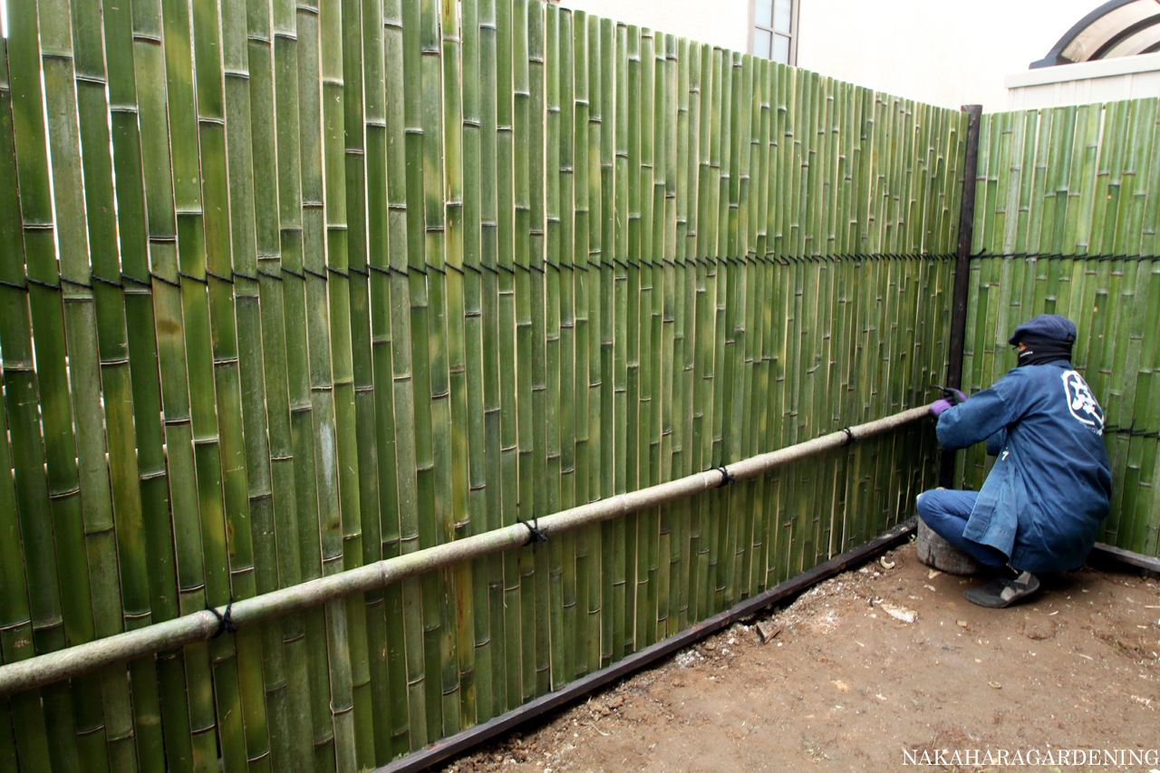 人工の竹でできた竹垣ではなく、あえて天然の竹と丸太で作ってもらいました。竹垣が、時間と共に変化してゆく様子を、味わい深く楽しんでいます。庭が完成し、竹の色が濃い緑色から黄色く変化していくにつれて、植えていただいた樹々の緑が強調されて、さらに趣きのある庭になってきたんです。